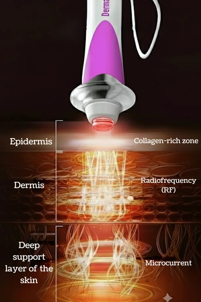 ✔ Radiofrequency (RF) stimulates collagen production by up to 64% after just 4 weeks of continuous use, improving skin firmness and reducing wrinkles (American Aesthetic Medicine).